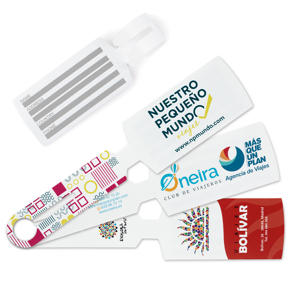 Etiqueta personalizável para malas de viagem. Obrigatório para fazer o check-in no transporte. Fabricadas em PP. Totalmente impermeável, impresso com o seu logotipo com todas as cores, ideal para as suas malas viajarem seguras e não se perderem. Modelo rectangular, na parte traseira vão os dados para identificação.